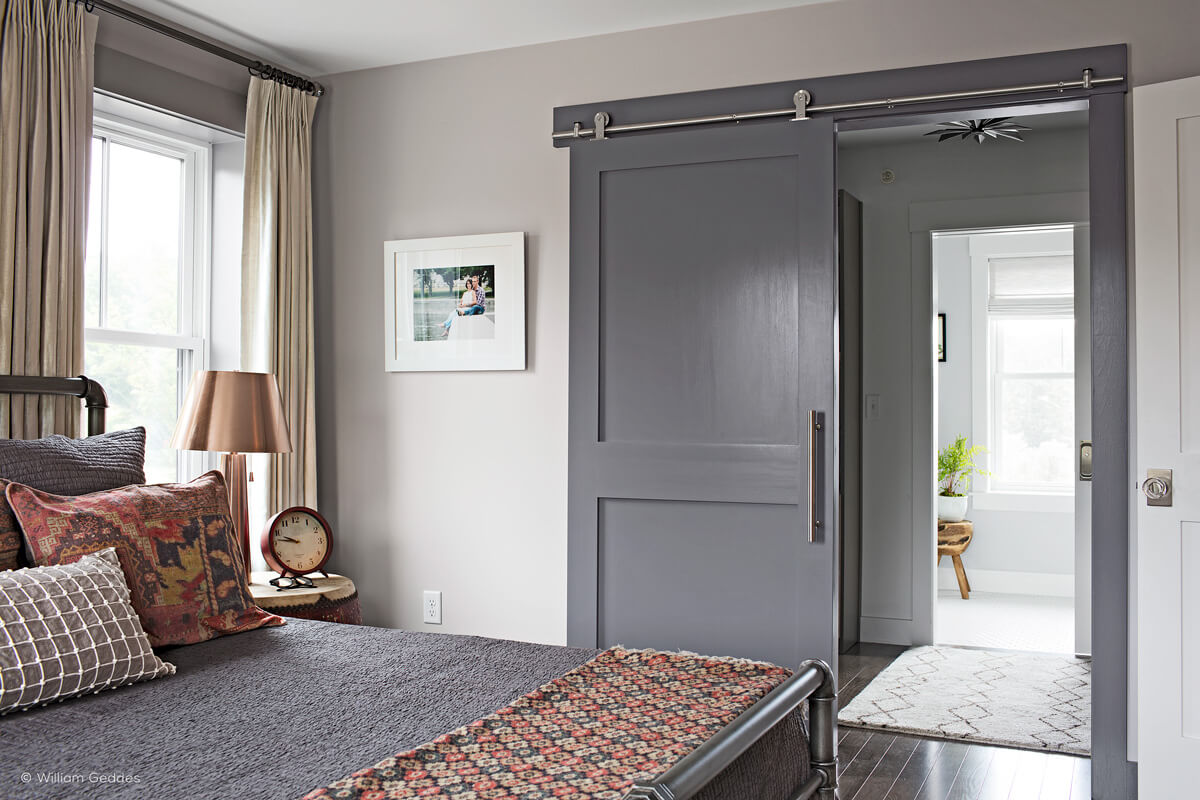 - Trang trí đơn giản giữa giường ngủ và cửa ra vào: Sử dụng ánh sáng có khả năng khuếch tán rộng.