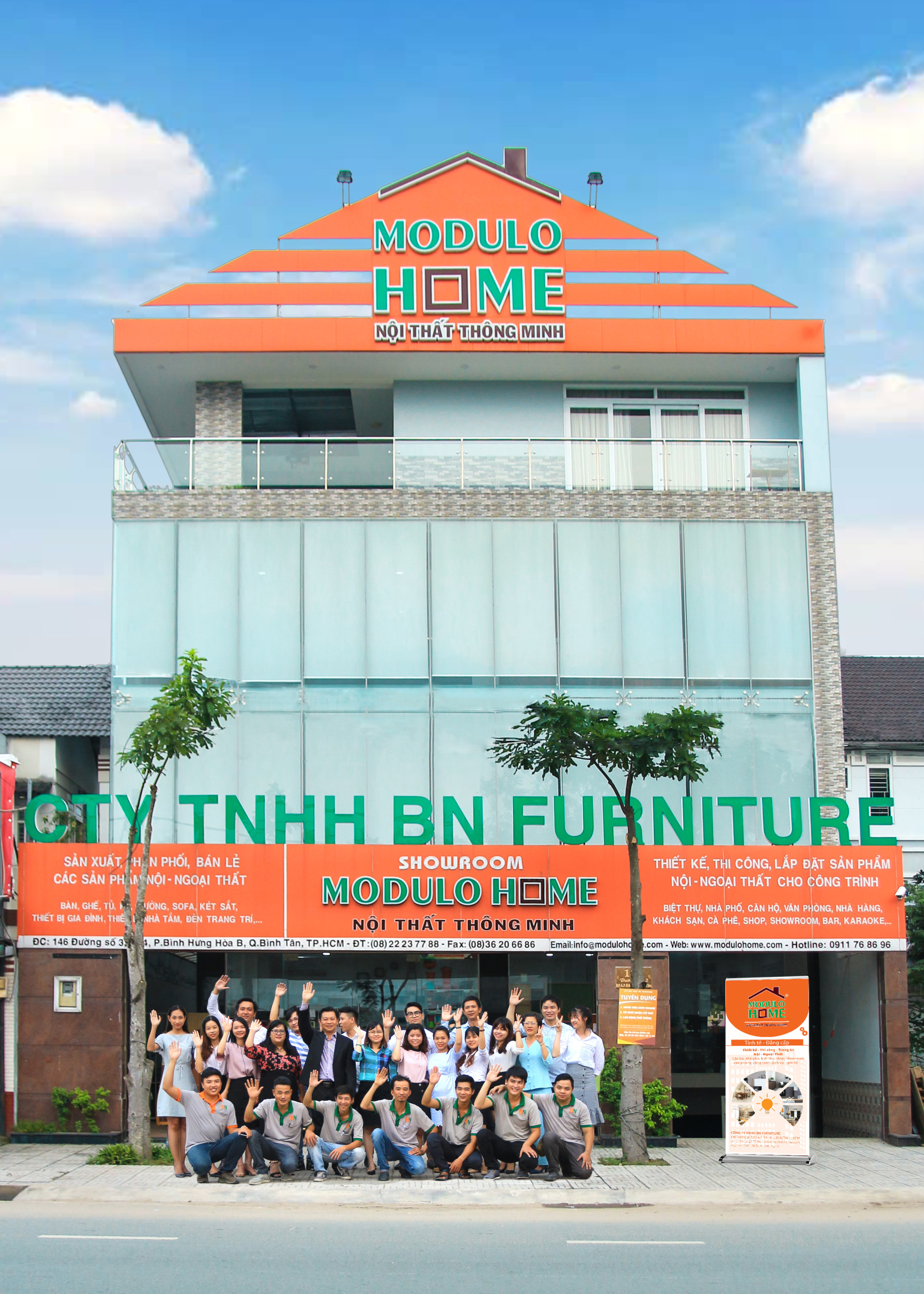 2. Hệ thống Phân phối - Bán lẻ nội địa: Nhằm đem đến cho khách hàng Việt Nam những sản phẩm trang trí nội ngoại thất vừa đạt tiêu chuẩn Châu Âu vừa tạo sự tiện lợi và tinh tế theo phong cách Châu Á, Công ty BN Furniture đã xây dựng hệ thống Phân phối và Bán lẻ cho thị trường nội địa với thương hiệu MODULO HOME. Hệ thống phân phối sỉ lẻ mang thương hiệu MODULO HOME đã phát triển và cung cấp cho thị trường trên 500 mặt hàng trang trí nội ngoại thất. Hiện nay có hơn 200 siêu thị và nhà sách đang phân phối các sản phẩm nội ngoại thất của công ty BN Furniture, gồm hệ thống siêu thị: Big C, Mega Market, Lotte Mart, Aeon Mall, Emart, Coop Xtra, Coopmart… và các chuỗi nhà sách: Văn Lang, Fahasa, Giáo dục, Phương Nam…cùng hơn 20 kênh bán hàng trực tuyến trên khắp cả nước như: Lazada, Tiki, Sendo, Shopee, Adayroi, Akulaku, Yes24... Qua sự tín nhiệm của khách hàng và sự lớn mạnh cũng như uy tín trong ngành kinh doanh sỉ lẻ, Công ty BN Furniture đã được Công ty Philips Việt Nam thuộc tập đoàn Royal Philips của Hà Lan chọn làm nhà đại diện phân phối thiết bị chiếu sáng mang thương hiệu Philips tại thị trường Việt Nam. Ngoài ra công ty Kean Beng Lee Industries SDN. BHD của Malaysia cũng chọn công ty BN Furniture làm nhà phân phối độc quyền tại thị trường Việt Nam cho các sản phẩm chậu nhựa trồng cây và dụng cụ làm vườn mang thương hiệu Baba: sản phẩm chậu nhựa trồng cây Baba được mệnh danh là Đệ Nhất Chậu Nhựa thân thiện với môi trường vì được áp dụng công nghệ tiên tiến trong quá trình sản xuất nên có khả năng tự hủy sinh học khi không còn sử dụng giúp môi trường không bị ô nhiễm cũng như bảo vệ sức khỏe lâu dài cho người sử dụng.